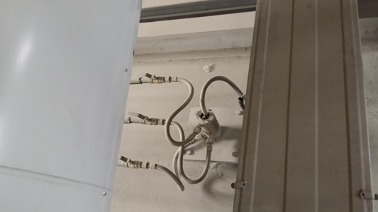 正在安装的浮法玻璃退火窑出口的DT40L红外测温仪