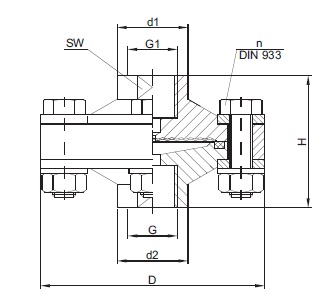 | G | G1 | PN | d1/d2 | D | H | n | SW |
